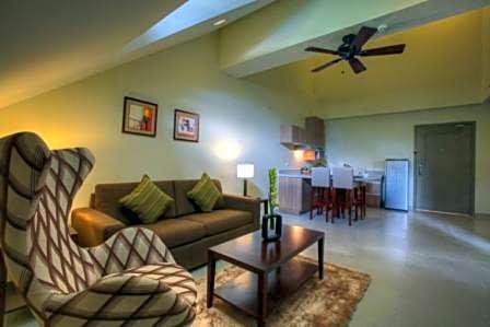 This spacious apartment features a bedroom with 1 queen-size bed and private bathroom. The separate living room comes with a sofa bed, LCD TV and DVD player. Other facilities include a fridge, microwave and dining area. Room does not have a balcony.